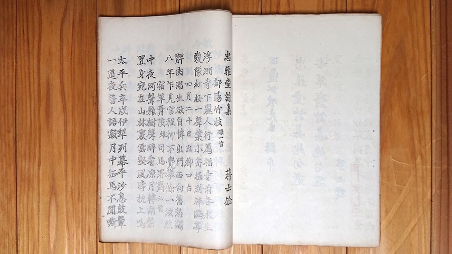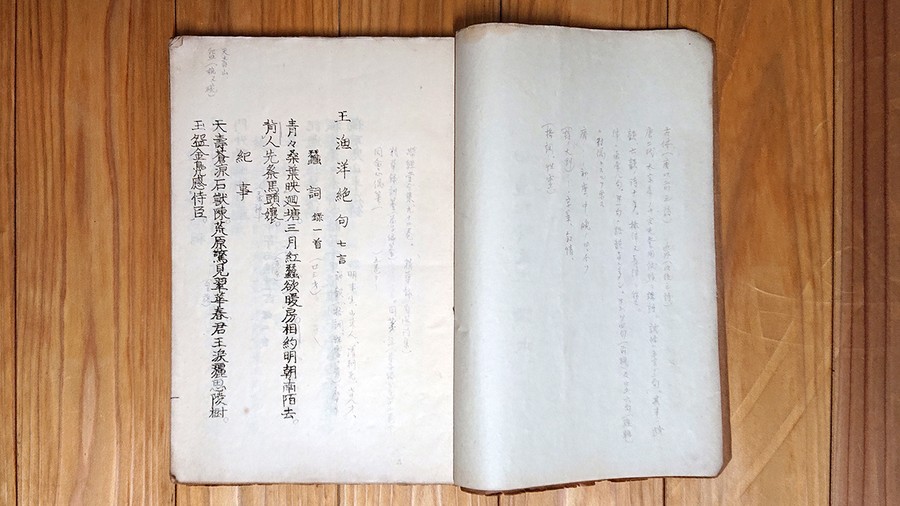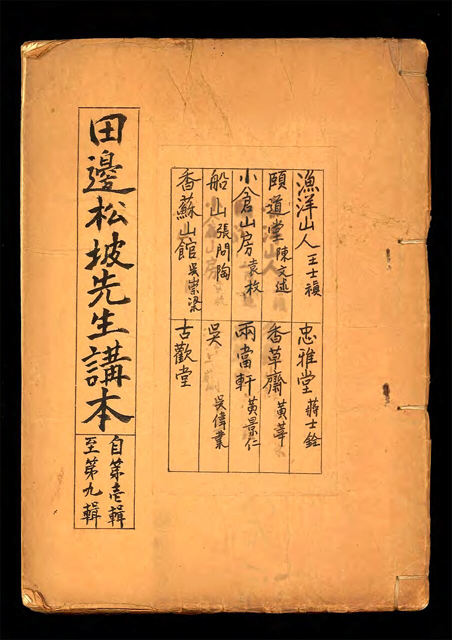 逗子開成中学校・鎌倉女学校の創始者で漢学者・田邊新之助の漢文講義の『清代詩』のテキスト。ガリ刷りに受講者の鉛筆書き込みがあり、あたかも松坡の講義のライブの如き臨場感に満ちている。